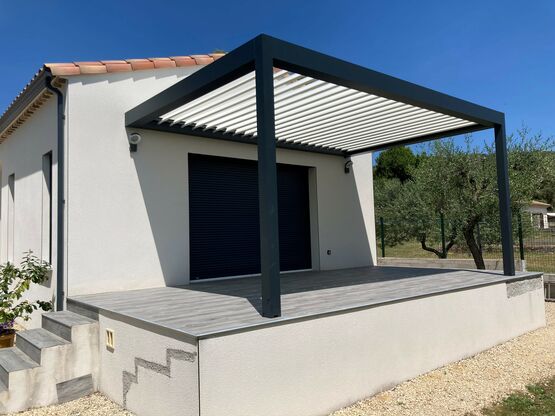 Grâce au système d’orientation des lames, il est possible d’adapter la pergola pour gérer la température sur la terrasse et réguler la luminosité en fonction de l’orientation du soleil. Il s'adapte facilement à tous type de supports et façades.