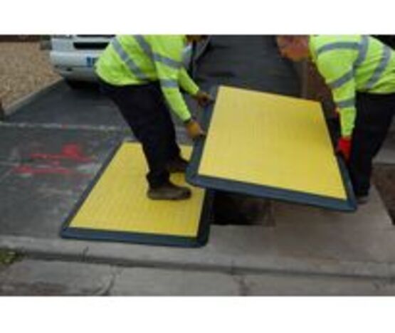 La plaque de franchissement de tranchées est utilisée pour sécuriser les lieux de passage lors de travaux. Un bord d’approche est prévu pour limiter le risque de chute.