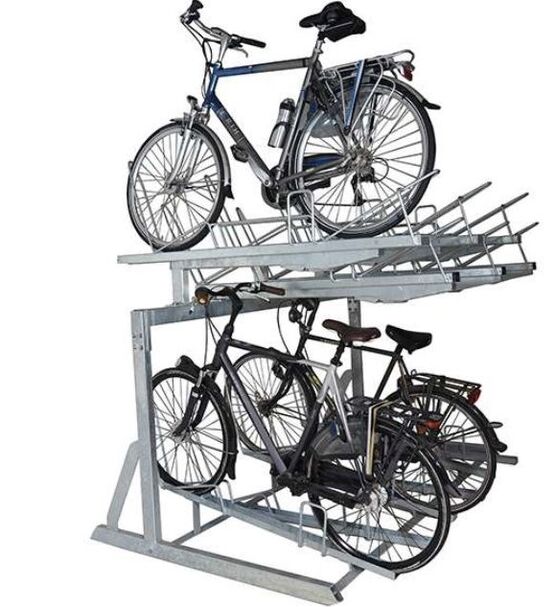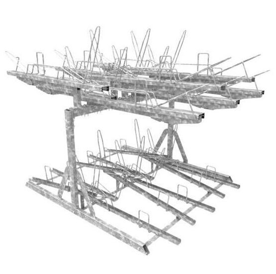 Ce support de stationnement est en acier galvanisé à chaud, facile à installer. Cela garantit une maximisation de l'espace et une facilité d'utilisation. Les vélos garés côte à côte, en haut et en bas, permettent un gain significatif de l'espace. Les bicyclettes peuvent être sécurisés avec leur propre cadenas.