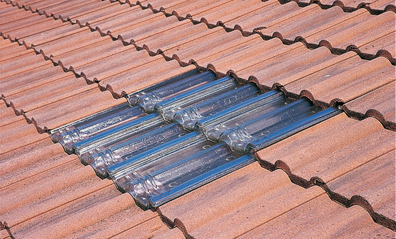 Tuile de verre permettant de laisser passer la lumière naturelle en toiture.