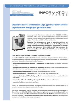 Chaudières gaz à condensation très haut rendement | C 230/ 330/ 630