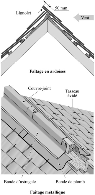 NewslettersLigne de crête délimitant deux pans d’une toiture inclinée. Le faîtage peut être métallique ou en ardoise.