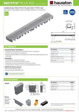 Caniveau en PE-PP de 10 cm de largeur intérieure pour zones industrielles | Recyfix Plus 100