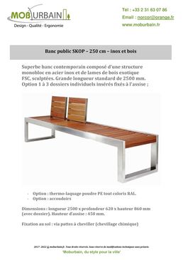 Banc public design contemporain inox-bois avec option dossiers | BASKOP