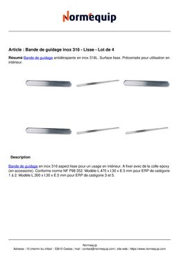 Bande de guidage inox 316 - Lisse - Lot de 4