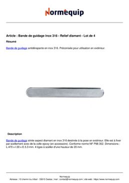 Bande de guidage inox 316 - Relief diamant - Lot de 4