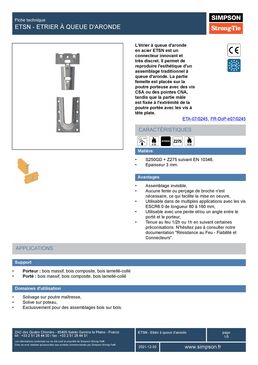 Connecteur étrier à queue d'aronde pour assemblage bois/bois | ETSN