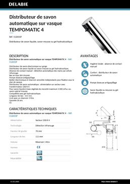Distributeur de savon automatique sur vasque TEMPOMATIC 4 | Réf. 512031P