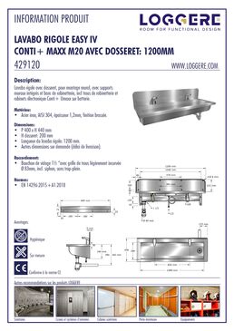Lavabo rigole en acier inoxydable | Easy IV Conti+ Maxx M20 avec dosseret