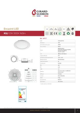 Luminaire encastré LED Ø180 x 18 enc.Ø165 12 W 3 000 k | Kili 169117