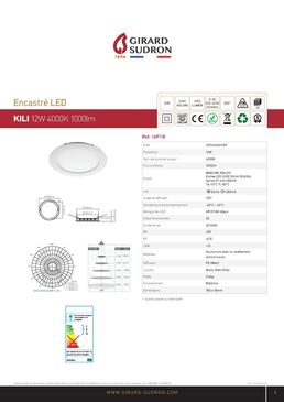 Luminaire encastré LED Ø180 x 18 enc.Ø 165 12 W 4 000 k | Kili 169118