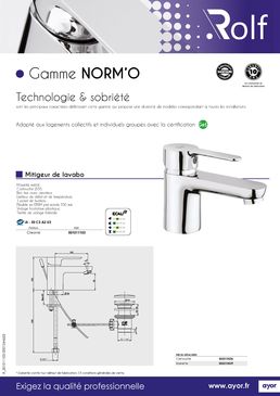 Mitigeur chromé Norm'O de lavabo, avec manette métal | ROLF