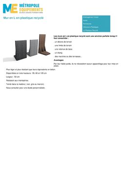 Mur en L en plastique recyclé pour application en extérieur | Métropole Equipements
