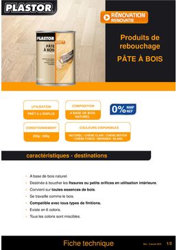 Pâte à bois à base de bois naturel pour rebouchage de bois intérieurs | PLASTOR