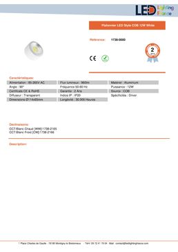 Plafonnier LED rond Style COB 12W White | Réf.1738-0000