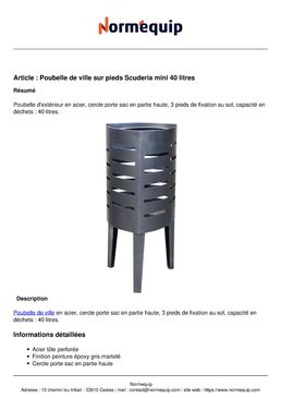 Poubelle de ville sur pieds Scuderia mini 40 litres