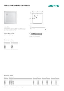 Receveur de douche ultra plat | BetteUltra 700-900 mm