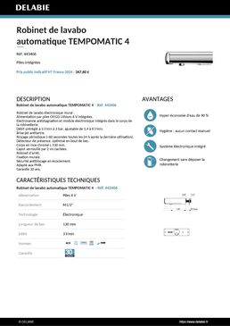 Robinet de lavabo électronique M1/2'' rob. mural à piles 6V int. L.130 TEMPOMATIC 4 | Réf. 443406
