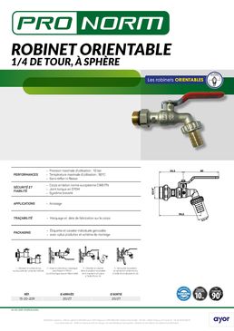 Robinet orientable ¼ de tour à sphère + Applique murale avec rosace de finition | PRONORM