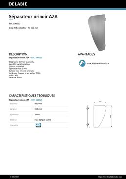 Séparateur urinoir AZA Inox 304 satiné | Réf. 100620