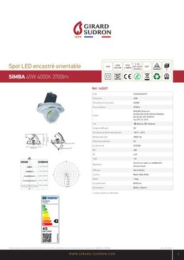 Spot encastré orientable LED Ø205 x 147 enc.Ø190 45 W 4 000 k 3 700 lm | Simba 162027