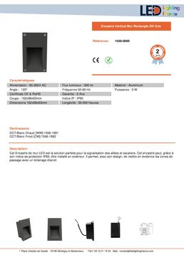 Spot encastré vertical mur rectangle 3W gris | Réf. 1556-1891