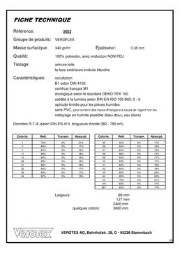 Tissu occultant M1 pour stores intérieurs | Veroflex 5023