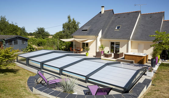 1. Saison de baignade étendue : Avec l'abri de piscine bas RENOVAL, la température de l'eau peut augmenter naturellement jusqu'à 10°C supplémentaires, prolongeant ainsi la durée de baignade bien au-delà des mois d'été habituels.
