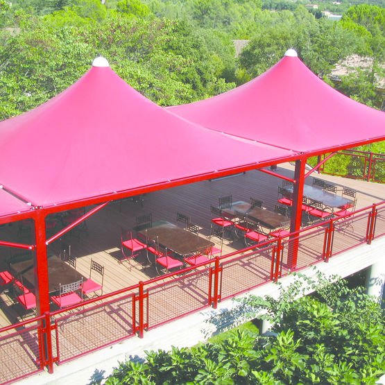 | Couleur : | 18 teintes RAL (ossature et poteaux), 16 teintes RAL (toile) |