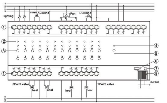 Le module dispose de 24 contacts de sortie avec la possibilité de configurer 24 canaux de commutation pour activer et désactiver les charges classiques, notamment l’éclairage et les prises