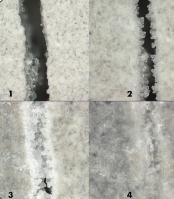 - Autoréparation des fissures jusqu'à 0,5mm par développement de microcristaux au contact de l'eau