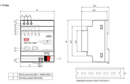 Alimentation sur rail DIN EIB avec sortie de courant de 30Vdc et starter intégré | MEAN WELL KNX-40E-1280