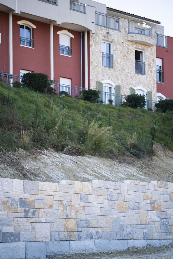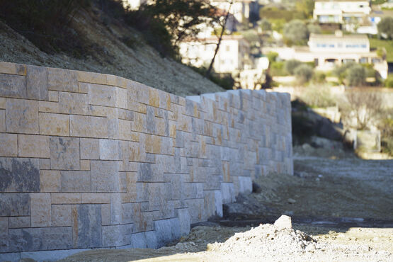 Le système Modul' par MODBLOC repose sur un brevet unique développé par Vincent Cannova. Basé sur le principe de l’ouvrage-poids, ces blocs de béton avec parement pierres naturelles ou béton matricé permettent de réaliser des murs de soutènements sans liant dans le cadre de l’aménagement urbain ou paysager.
