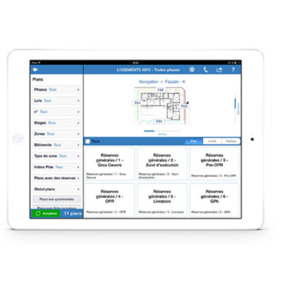 2. Suivi en temps réel : Grâce à une interface intuitive, l'application offre une visibilité complète sur l'avancement des travaux. Cela inclut la visualisation des plans par zones et étages, permettant ainsi une gestion précise et proactive des étapes du chantier.