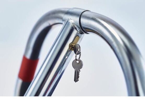 Le système de verrouillage est automatique grâce à un pied central équipé d'une serrure à demi-cylindre européen, qui garantit un verrouillage et un déverrouillage faciles.