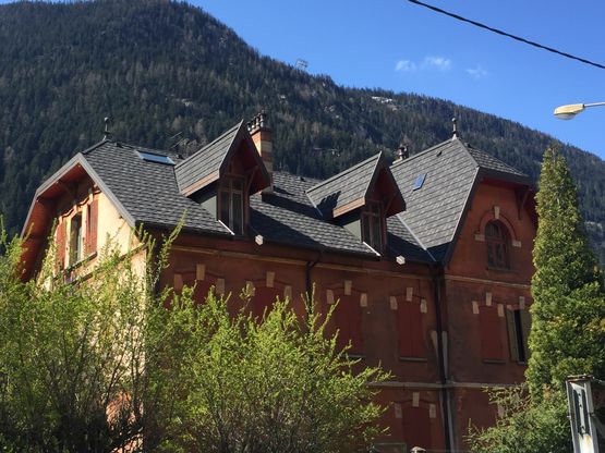 Aspect traditionnel d'ardoises et de petites tuiles plates »