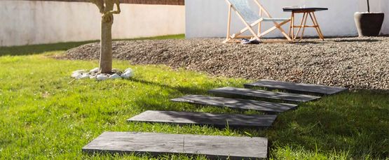 Ces dalles solides peuvent garnir vos jardins en y créant des parcours et des allées grâce à de beaux formats de palis et de pas japonais.