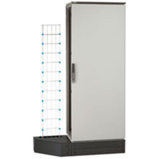 | Accessoires : | plaques passe-câbles, toits, socles, traverses et plaques pleine largeur totale préperforées ou perforées, rails et montants, cloisons de séparation, portes internes, kits d'assemblage. |