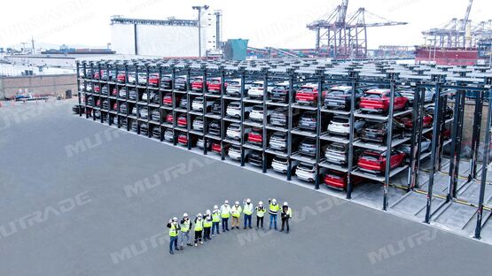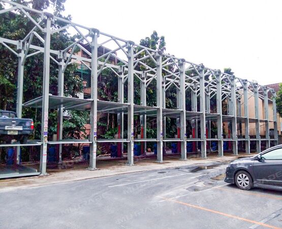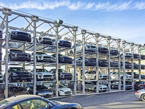 - Chaque monte-voiture offre trois places de stationnement sur une seule plateforme.