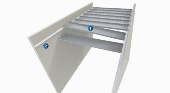 Fabriqués en tôle d’acier galvanisé de 0,5 mm d’épaisseur, perforés ou non, ils se déclinent en plusieurs finitions : prélaqué blanc (approchant RAL 9003), post-laqué peinture poudre polyester (RAL 9003, 9016, 9010, 9005) et toute autre teinte RAL sur demande.