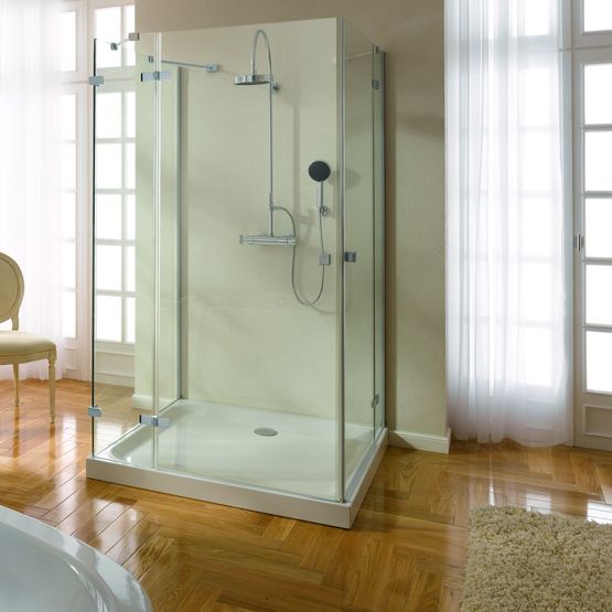 Bacs de douche acrylique avec parois coordonnées en verre | Futurion