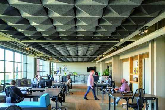 2. Design esthétique et fonctionnel : Inspirés de l'origami, ces baffles transforment les plafonds en œuvres d'art, tout en participant à la gestion acoustique des lieux.