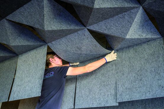 Baffles acoustiques en feutre dépliées en origami | HeartFelt Origami
