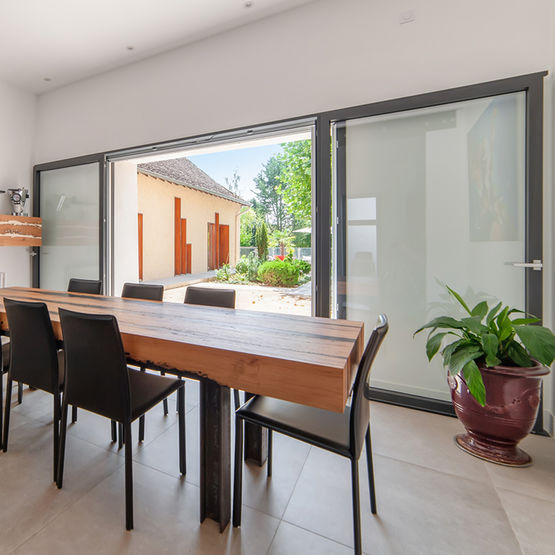 Le coulissant M3D.s permet de remplacer des portes-fenêtres jusqu’à 225 x 200 cm en 1 seul vantail.