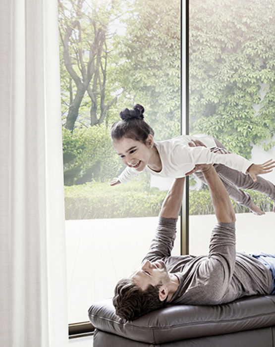 SLINOVA X est un choix lumineux par excellence grâce à sa large surface de vitrage et ses ouvrants aux lignes fines et minimalistes du fait de leur construction en RAUFIPRO X, un matériau composite, 100 % recyclable alliant PVC et fibre de verre nouvelle génération.
