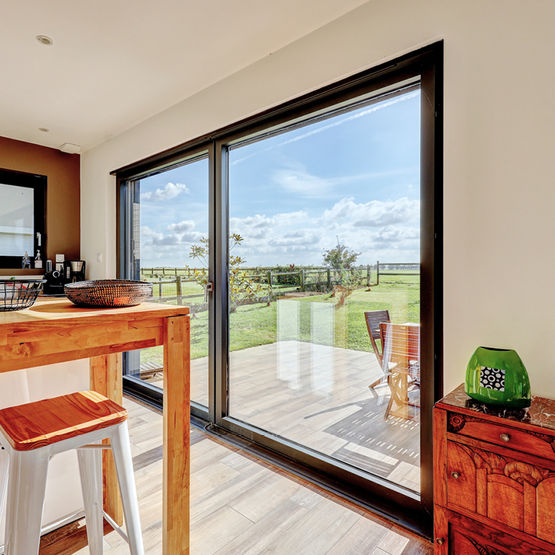 - Ouvrant et dormant de 78 mm d'épaisseur en profilés aluminium, mixte bois/aluminium ou PVC