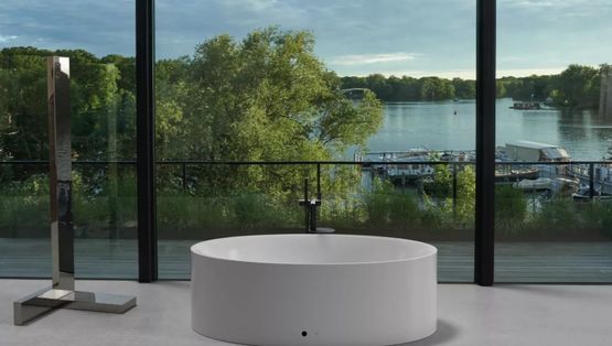 1. Élégance intemporelle : Les lignes douces et la silhouette ovale de la baignoire créent une ambiance harmonieuse et apaisante dans la salle de bain.