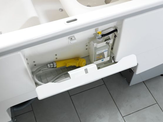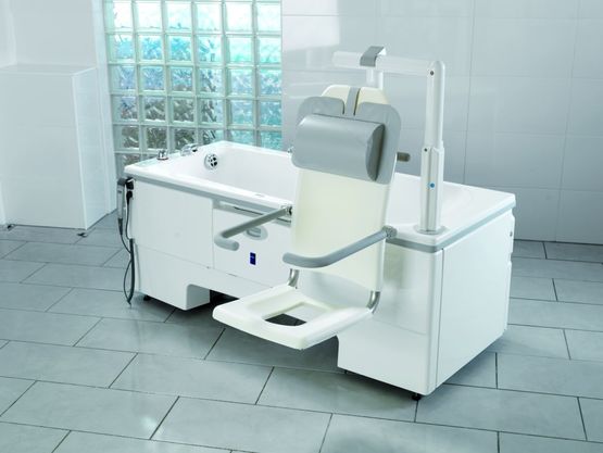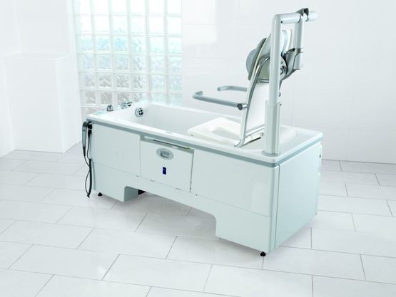 2. Facilité d'utilisation : L'élévateur de siège intégré, le châssis amovible et la compatibilité avec les lève-personnes Arjo simplifient l'accès à la baignoire.