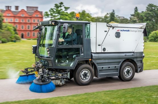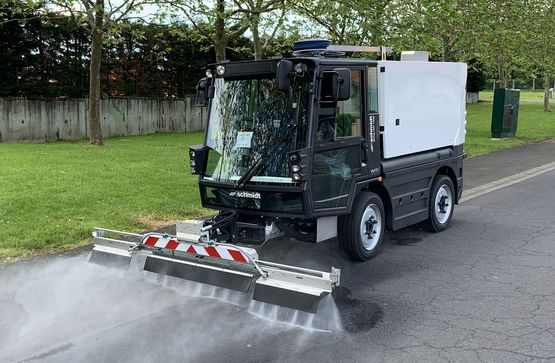 - Équipée de deux brosses rotatives à l'avant et d'un rouleau latéral