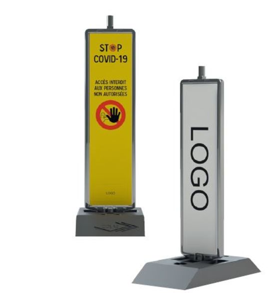 | Options : | Socle Plastobloc 15 et 25 kg avec réservation de 60 x 60 mm Autres solutions de lestage (nous consulter) Pochette porte Arrêté rigide et transparente sur une ou deux face Feux de chantier sans fils |